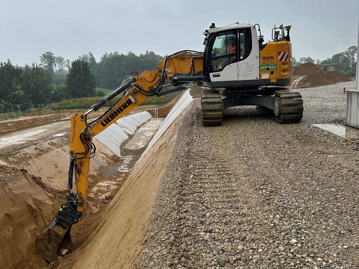 Die Urvermessung des Geländes wurde innerhalb einer halben Stunde aus der Luft mit einer Drohne vom Typ DJI Mavic 3 Enterprise ausgeführt. Nach der klassischen Vermessungsmethode ausschließlich mit dem Rover würde ein Vermesser ca. zwei Tage allein für diese Arbeit benötigen. Mit den Daten wurde ein digitales Geländemodell erzeugt, um die Massen für das Angebot zu ermitteln und es nach Auftragsvergabe für die 3D-Steuerungen der Maschinen zu nutzen. Für die präzise und schnelle Umsetzung der Planung mit Trimble Earthworks 3D-Maschinensteuerungen kamen zwei Bagger mit GNSS-Positionierung mit den neuen Trimble MS976-Empfängern sowie zwei Raupen mittels einer hochgenauen UTS-Steuerung mit der Trimble SPS930 Totalstation und dem Maschinenprisma MT900 zum Einsatz. Durch das Arbeiten mit den Maschinensteuerungen musste zur Kontrolle der Höhen nicht extra abgesteckt werden und die Maschinen konnten unterbrechungsfrei durcharbeiten. Auf Planänderungen während des Projekts konnte Brandl flexibel reagieren, die aktuellen Pläne mit dem Trimble WorksManager vom Büro aus direkt mit den Maschinen und ausführenden Mitarbeitern auf der Baustelle teilen und so Arbeiten nach veralteten Plänen vermeiden. Brandl konnte die Erdarbeiten auch aufgrund der fortschrittlichen Arbeitsweise in einem engen Zeitfenster im Dezember letzten Jahres fristgerecht fertigstellen.