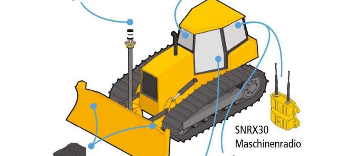 Ein M12 Anschluss befindet sich am Sensor und die Stromversorgung erfolgt über 9V - 32V DC. Derselbe Sensor GS520 wird in allen Maschinentypen (Bagger, Dozer, Grader,..) verbaut.